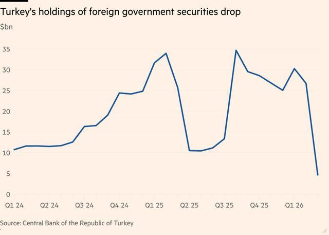 官方数据显示,自2月27日美以袭击伊朗前一日起,土耳其央行已从外汇储备中抛售220亿美元外国政府债券,塞策称其中相当一部分可能为美债。